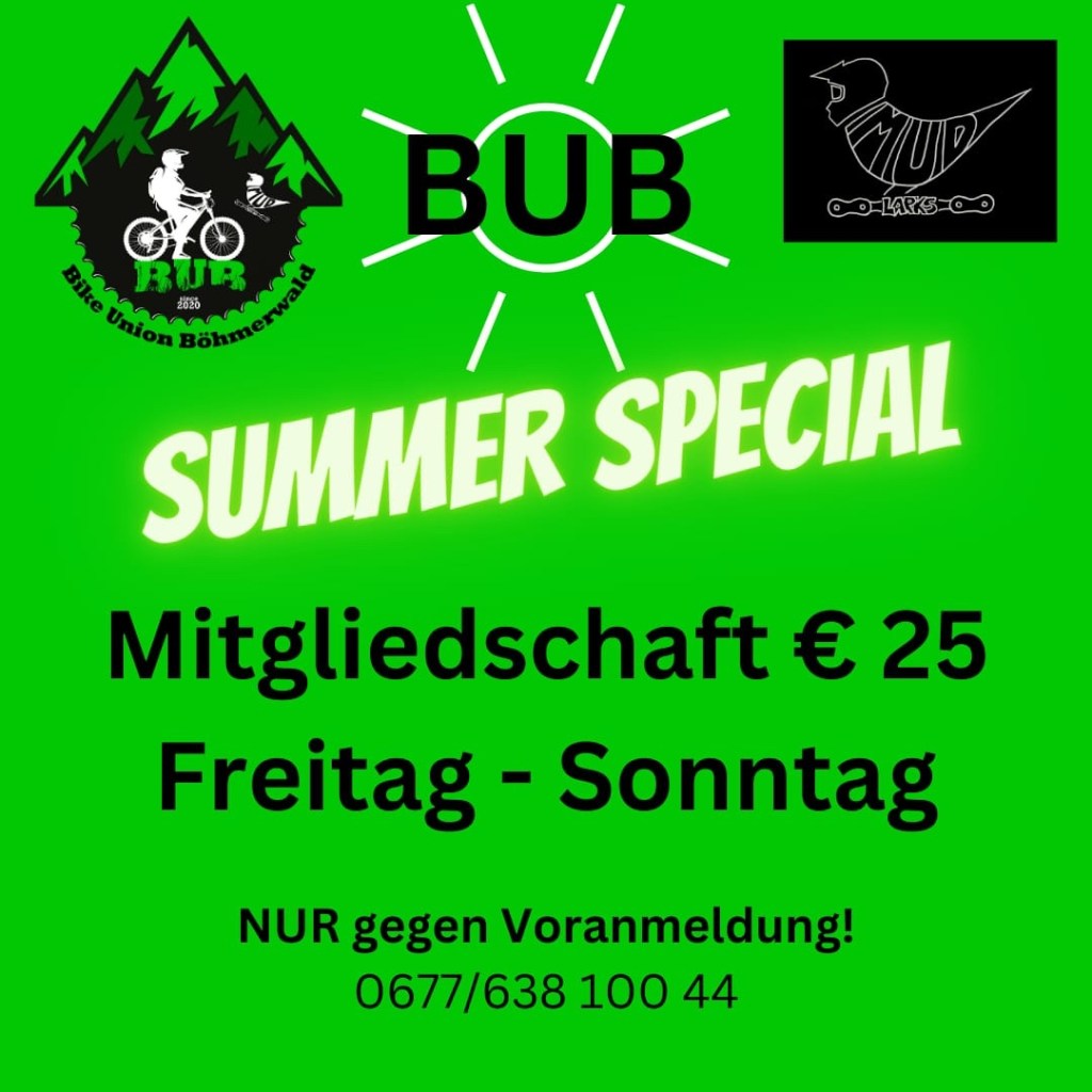 Nur für kurze Zeit gibt’s jetzt bei uns das BUB Summer Special. Für 25€ ist der Bikepark für dich nutzbar, das von Freitag bis Sonntag. Wenn du jemand bist, der unter der Woche nicht die Zeit zum Trainieren hat, wird dir am Wochenende der Zutritt zum Park offen stehen. Take your chance, take your bike! Es lohnt sich! 👍