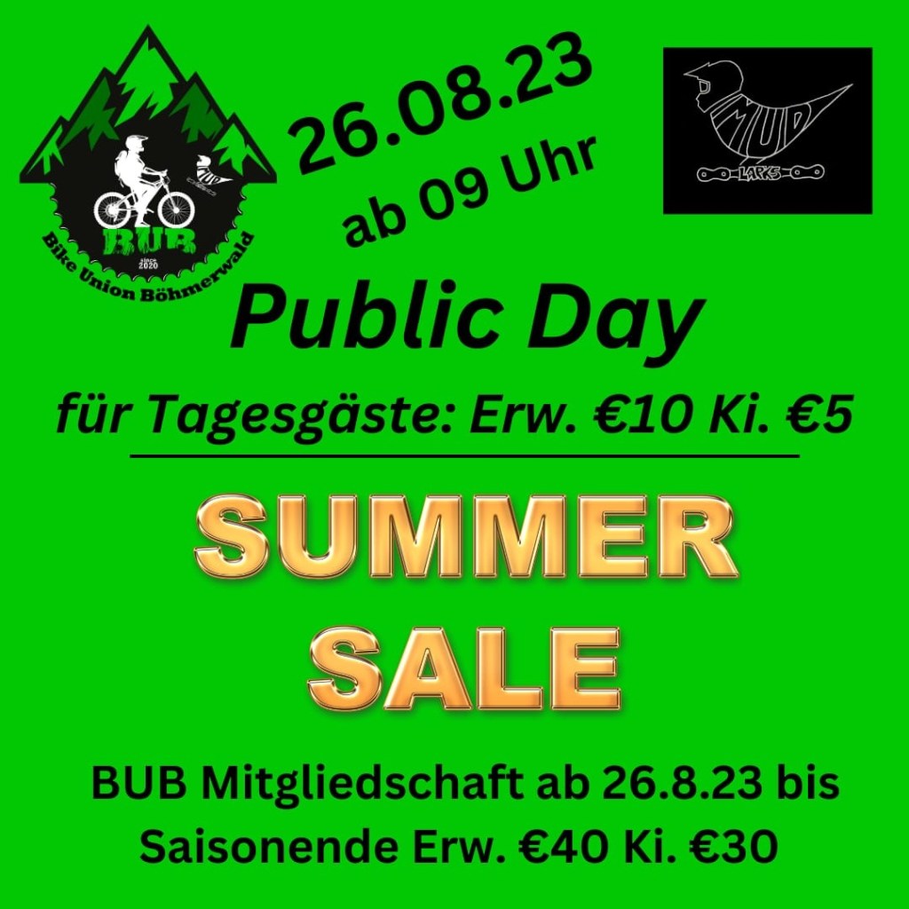 Es ist wieder soweit! Der nächste Public Day steht vor der Türe, wir freuen uns auf euer Kommen! Am 29.10.2023 öffnet die BUB auch für Nichtmitglieder den Bikepark, für unsere Kleinsten stehen Greenhorn- und Rookie Line bereit! Eure Spenden werden zum Erhalt und zur Pflege des Bikeparks aufgewendet, DANKE dafür! 👍