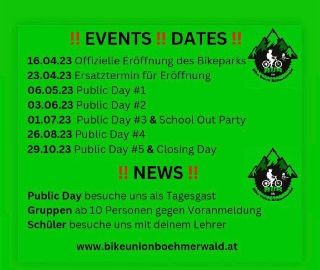 Opening und Tag der offenen Tür des BUB Bikeparks findet am 23.04.2023 statt! 👍
