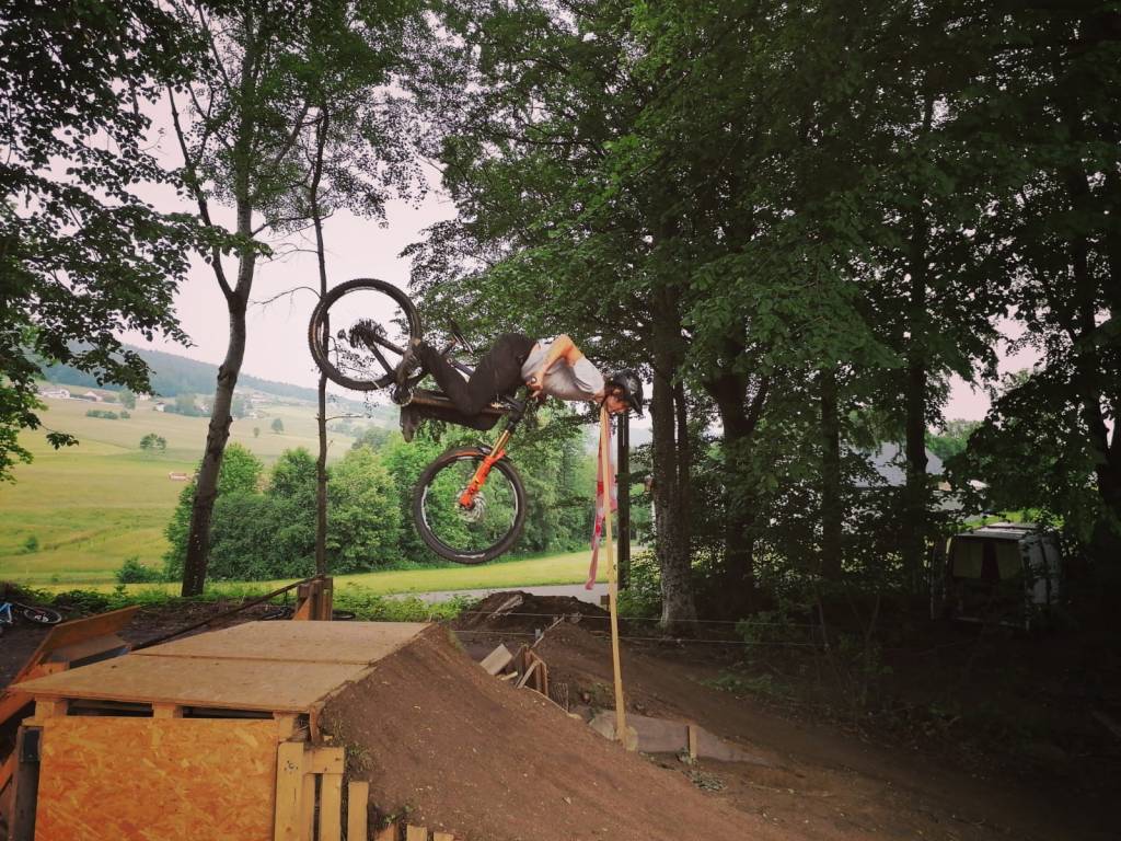 Niemand geringerem als Christoph „Shizzl“ Eder stand es zu, den ersten Backflip – also einen Rückwärtssalto – im Dirtpark Aigen-Schlägl zu drehen.